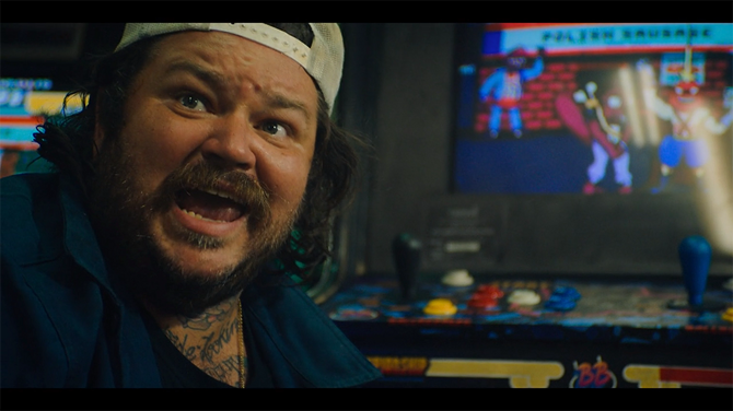 According to Matty Matheson's character Fak, Ballbreaker is a fictional "Norwegian knock-off of Mortal Kombat... a fighter and a f***in' scroller!"
